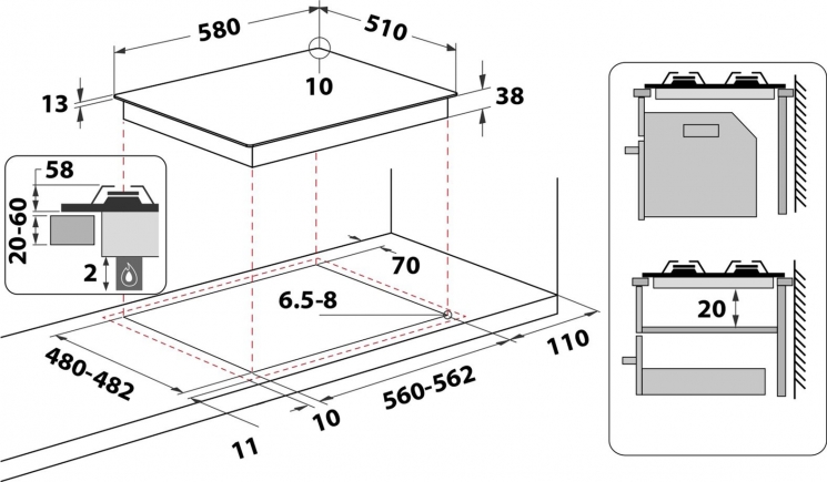 Система газ контроль відключить подачу газу до конфорки, якщо полум'я випадково згасне (через раптовий протяг, перебої в подачі газу, витікання рідини і т.д.).