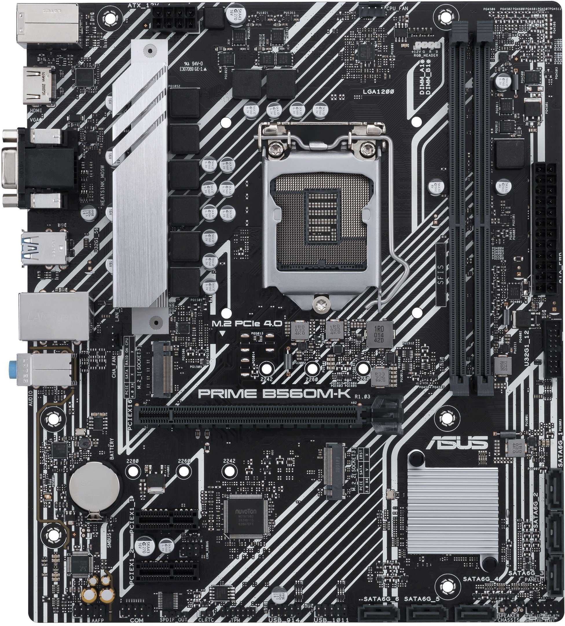 Prime B560M-K оснащена двома роз'ємами M.2, один з яких має інтерфейс PCI Express® 4.0, що забезпечує швидкість передачі даних до 64 Гбіт/с. Він ідеально підходить для підключення високошвидкісного твердотільного накопичувача, який дозволяє значно прискорити стартове завантаження операційної системи й запуск програм.