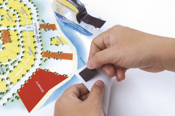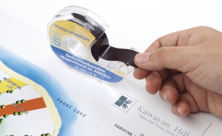Особливістю магнітних самоклеючих стрічок magnetoplan є хороша адгезія стікерних магнітних наклейок з папером, картоном, пластиком та іншими матеріалами, а також можливість видалення наклейок без пошкодження матеріалу і без слідів клею на його поверхні.