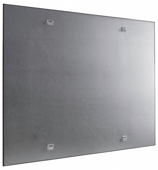 Скляна магнітно-маркерна дошка виготовлена з глянсового безпечного ESG-скла найвищої якості, надійно приклеєного до металевої основи, що забезпечує феромагнітні властивості дошки та можливість настінного монтажу.