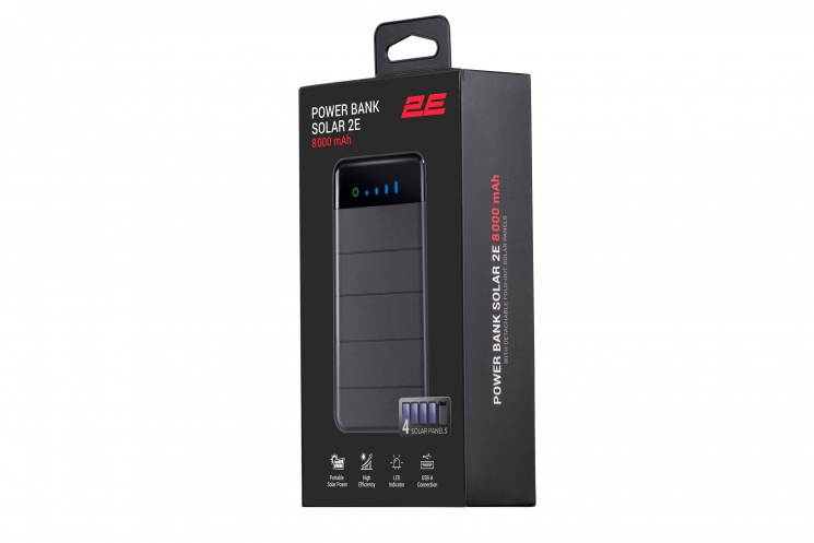 Опис Акумулятор портативний літій-іонний Power Bank 2E Solar 8000мА·год, вбудований LED-ліхтар, чорний