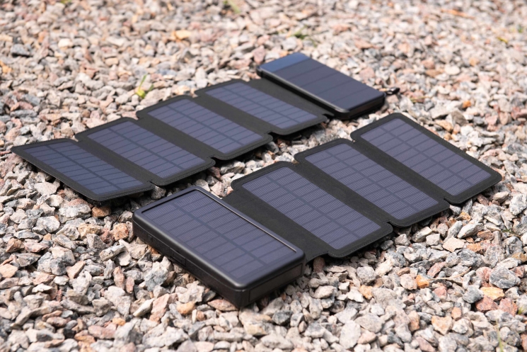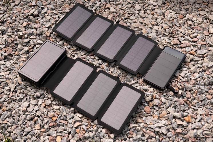 Пристрій у мінімалістському стилі виконано в чорному кольорі. Ємність акумулятора становить 8 000 мА·год, потужність – 4 Вт / 5 В (максимальна). Особливістю «банки» є знімні сонячні панелі (4 шт.).