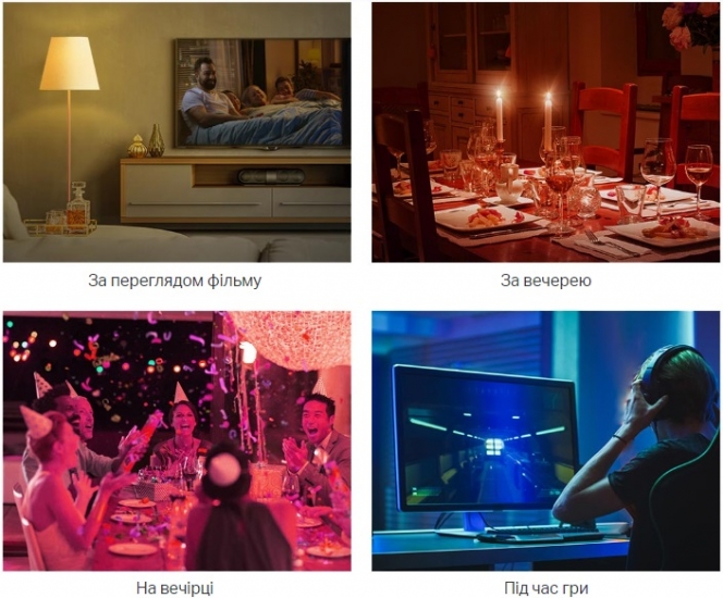 Tapo L530E Розумна багатобарвна Wi-Fi лампа. Зручні предустановки. Підібрали ідеальне освітлення для перегляду фільмів? Збережіть його на майбутнє. Розклад і таймер. Створіть розклад для увімкнення/вимикання на заданій яскравості в потрібний час. Режими світанку і заходу автоматично активують світло в залежності від часового поясу. Голосове керування. Звільніть руки завдяки Google Асистенту, скажіть: «Окей, Google, включи світло» або «Окей, Google, приглуши світло в спальні».