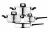 Набір посуду ARDESTO Gemini містить 7 предметів: ківш об’ємом 1,4 л, каструлі об’ємом 2 л і 2,9 л, сковороду діаметром 24 см та три кришки з отвором для пари. Ручки посуду з бакеліту з Soft-touch-покриттям не ковзають, зручно розташовуються в руці та є безпечними. Для зручності на стінки ковша і каструль нанесено мірну шкалу. Посуд сумісний із газовими, електричними, склокерамічними, галогенними й індукційними плитами.