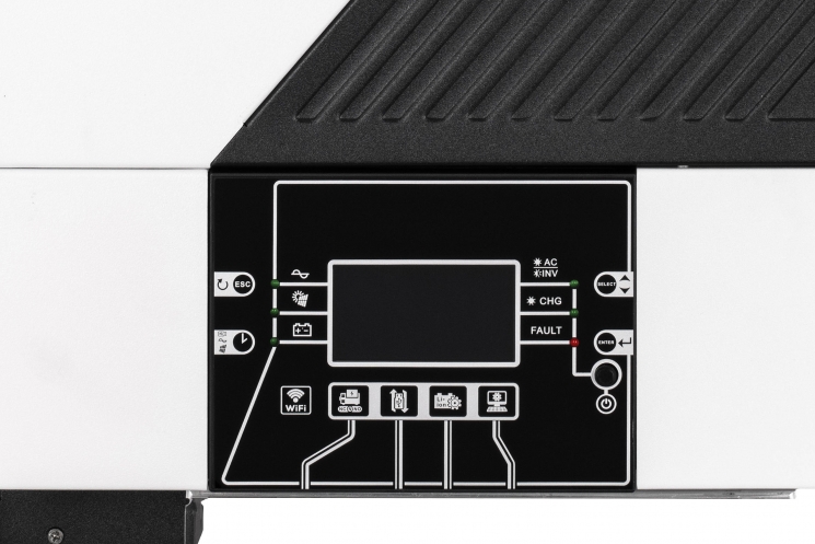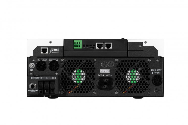 Чистий синусоїдний сигнал вкрай важливий для правильної роботи «точної» техніки (насосів, котлів). За умов аварійного припинення електропостачання або в разі нестабільної роботи електромережі в пригоді стане автономний інвертор потужністю 4 200 ВА, що забезпечує чисту синусоїду 230 В (Hardwired) у режимі роботи від батареї. А для підключення до ФЕ-масиву максимальною потужністю 5 000 Вт передбачено вбудований контролер MPPT (вікно МРРТ: 60-450 В постійного струму). Крім того, у разі потреби до інвертора також можна додатково під’єднувати батареї різних типів 24 В, при цьому максимальний струм ЗП – 120 А (комбінований).