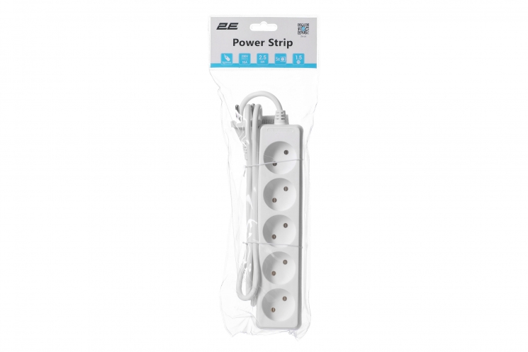 Подовжувач 2E 5 розеток 1.5м 10А 2x1.0мм2 White (2E-U0510M1.5)