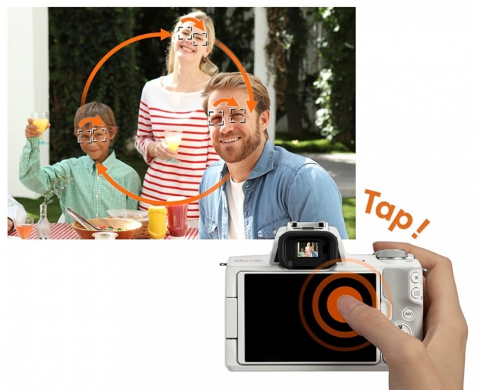 Передова технологія автофокусування Dual Pixel CMOS AF відстежує особи і очі і утримує їх у фокусі. Ця система впорається навіть в сутінках або при кімнатному освітленні, коли смартфон, звичайний фотоапарат або веб-камера будуть довго шукати фокус.