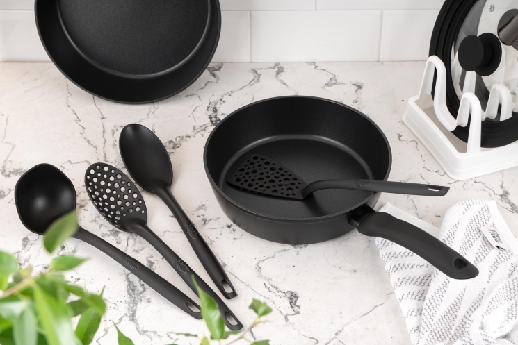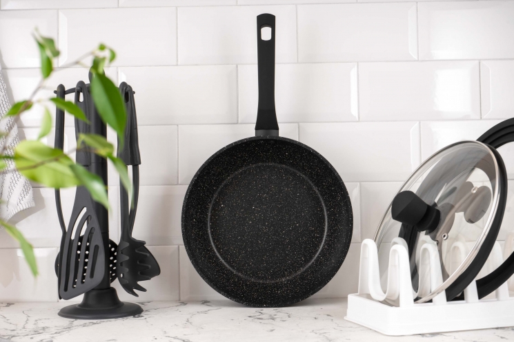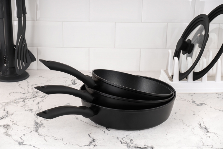 Містка сковорода діаметром 28 см – «мастхев» для кожної кухні. Модель виготовлена з кованого алюмінію, руків’я має soft-touch-покриття. За висоти 7 см товщина стінок складає 2,6 мм, а дна – 4 мм. Виріб не рекомендовано мити в посудомийній машині. Зсередини поверхня має протипригарне покриття, а щоби сковорідка слугувала довше, під час приготування необхідно використовувати силіконові чи інші неметалеві аксесуари.