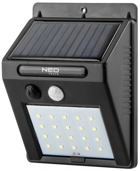 Прожектор Neo Tools, алюміній, 220 В, 20Вт, 1600 люмен, SMD LED, кабель 0.3 м без вилки, IP65. Рефлектор SMD 20Вт, 99-051, NEO, використовується для освітлення проїздів, терас або входів до будинків. Його також можна використовувати у приміщенні, наприклад, у гаражі чи підвалі. Кут освітлення складає 100°. Пристрій має міцну конструкцію, оскільки світлодіод LED поміщений у алюмінієвий плафон за склом. Ступінь захисту корпусу IP65 означає, що він пило-і водонепроникний. Рефлектор з датчиком руху встановлюється на квадратний кронштейн настінний з отворами для кріплення.