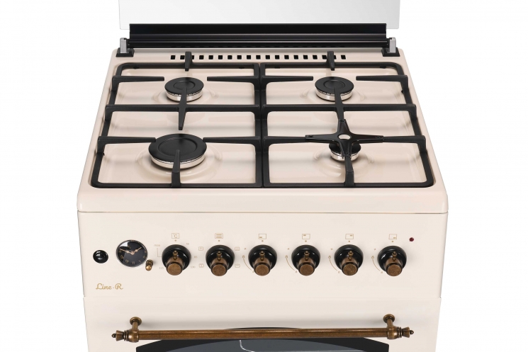 Комбінована плита ARDESTO Line-R FSCF-C606BG в корпусі бежевого кольору. Варильна поверхня оснащена чотирма газовими конфорками (пальниками). Змінні форсунки для скрапленого газу (LPG) в комплекті.