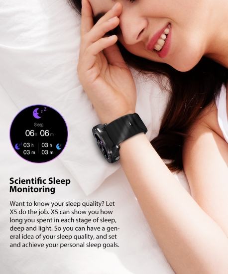 Хочете знати якість свого сну? Дозвольте X5 зробити цю роботу. X5 може показати вам, скільки часу ви провели в кожній стадії сну, глибокій і повільній. Таким чином, ви можете мати загальне уявлення про якість вашого сну, а також ставити і досягати ваших особистих цілей щодо сну.