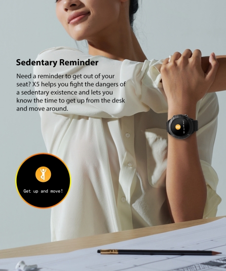 Потрібне нагадування, щоб встати зі свого місця? X5 допоможе вам боротися з небезпекою сидячого способу життя і нагадає, коли потрібно встати з-за столу і почати рухатися.