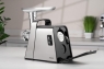 М’ясорубка ARDESTO має потужний двигун 2 400 Вт, до того ж вирізняється високою продуктивністю – 2,2 кг/хв, тож впорається з будь-яким, навіть особливо складним, завданням. Модель має мінімалістський дизайн, ергономічну та надійну конструкцію: втулка шнека, що забезпечує надійне зчеплення зі шнековою частиною, – металева, передбачено кнопковий механізм фіксації «горловини», Х-подібний ніж вироблено з якісної нержавіючої сталі, лоток для завантаження продуктів також металевий. Крім того, передбачено захист від перевантаження, що не дасть двигуну вийти з ладу під час максимальних навантажень. Якщо м’ясорубка забилася, у нагоді стане режим реверсивного обертання. Важливо: функцію реверсу заборонено вмикати під час роботи пристрою. На корпусі вбудовано зручне руків’я для легкого транспортування.