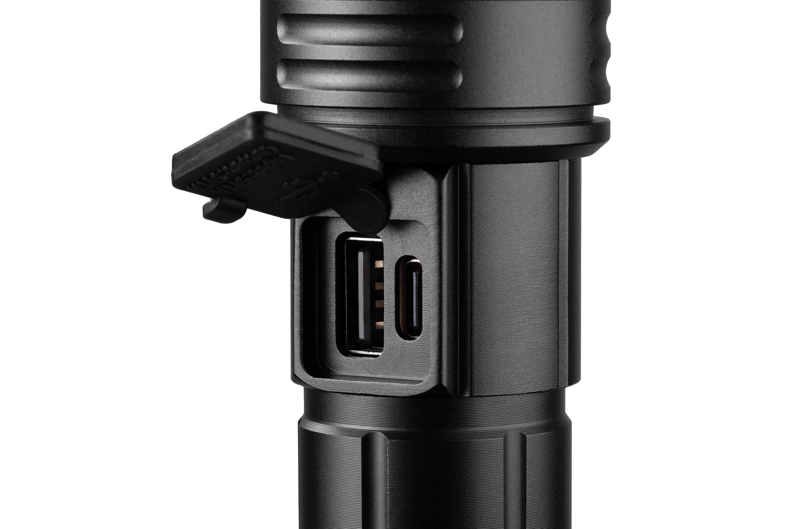 Ліхтар має зум для регулювання діаметра світлового променю та п’ять режимів освітлення: потужне, середнє, низьке, стробоскоп та SOS. Час автономної роботи – до 4 годин, пристрій також можна використовувати як повербанк. Ємність літій-іонного акумулятора (3,7 В) становить 2 200 мА·год (1 × 18 650), повністю відновлює заряд за допомогою кабелю USB Type-C впродовж 4 годин.