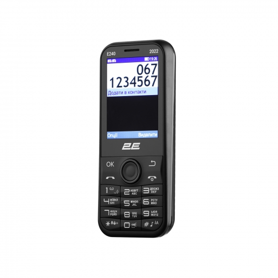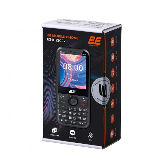 Мобільний телефон 2E E240 2022 виконаний у компактному корпусі з якісного пластику. Телефон комфортно лягає в руку, а завдяки спеціальній формі клавіш зручний набір і керування гарантовано. Багатий функціонал телефона надає користувачеві широкі можливості, з-поміж яких: голосові дзвінки, SMS-повідомлення, телефонна книга на 500 номерів, аудіоплеєр, FM-приймач, органайзер тощо. Підтримує роботу двох SIM-карт. Передбачено унікальну функцію SOS. Потужний акумулятор 1 000 мА·год забезпечить довготривалу роботу без підзаряду.