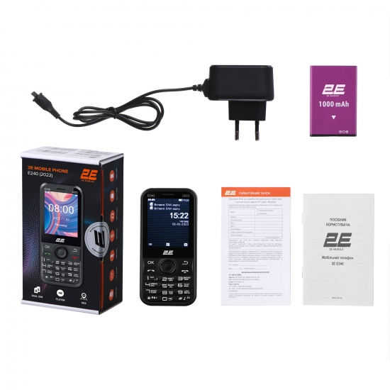 Мобільний телефон 2E E240 2022 2.4" 2SIM, 1000мА•год, чорний