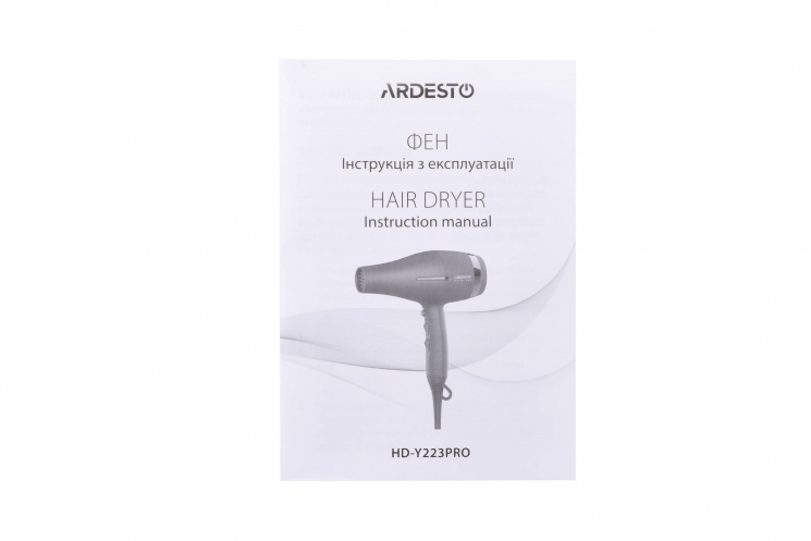 Опис Фен ARDESTO Violet PRO HD-Y223PRO, 1850-2200Вт, 2 швидкості , 3 темп.режими, дифузор, чорний