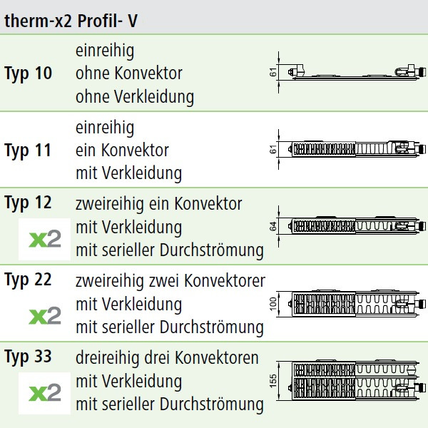 Технічні характеристики Радіатор сталевий Kermi Profil-V FTV 33 тип 300x2600мм нижнє підкл, 4226Вт Therm-X2 RAL 9016 білий глянець: