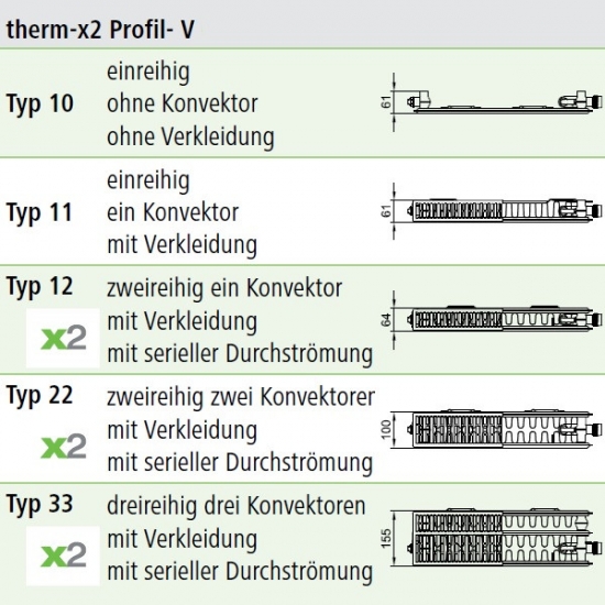 Технічні характеристики Радіатор сталевий Kermi Profil-V FTV 33 тип 400x1000мм нижнє підкл, 2044Вт Therm-X2 RAL 9016 білий глянець: