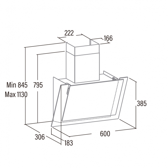 Технічні характеристики Витяжка Cata похила, 60см, 900м.куб/год, Valto 600 xgwh, білий: