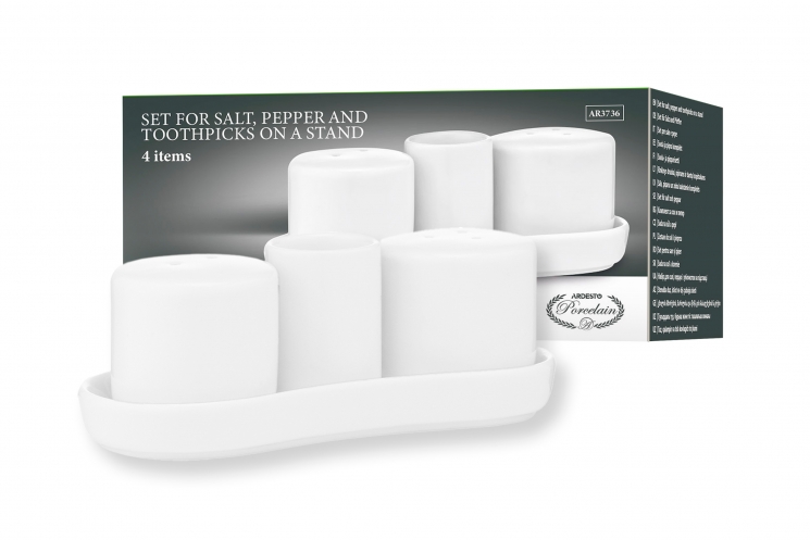Набір для солі та перцю ARDESTO, 4 предмети, порцеляна, білий (AR3736)