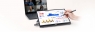 Вбудована безступінчаста підставка підтримує як альбомний, так і портретний режими. Він забезпечує рух шарнірів до 150°, тому він простий у використанні та гнучкий для будь-яких сценаріїв дотику чи письма. Також є вбудоване гніздо для штатива, яке дає змогу піднімати та орієнтувати ZenScreen Ink у будь-якому положенні.