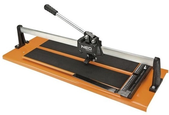 Плиткоріз Neo Tools, робоча частина 600х600 мм, амортизуюча робоча поверхня 56-004. Плікторез NEO із різальним ножем діаметром 16 мм. Оснащений одинарною напрямною із міцного смугового металу 30 x 12 мм. Завдяки голівці на підшипниках, можна отримати точніше розпилювання. Метрична шкала разом із косинцем дозволяють точно розташовувати керамічну плитку. Додатковою перевагою є наявність амортизованої робочої основи товщиною 2 мм, покритої пористою гумою, що допомагає відламувати плитку після надрізу.