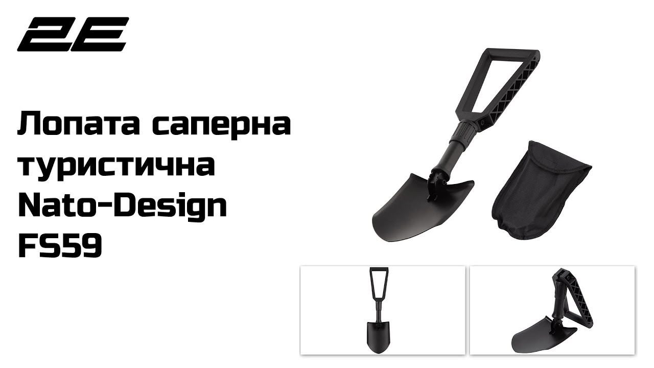 Лопата легка, зручна, міцна і компактно складається втричі. Довжина в зібраному вигляді 24 см, у розкладеному стані 59 см.