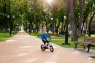 Кермо та сидіння регулюються по висоті в широкому діапазоні. Сидіння м'яке, з покриттям із ECO-шкіри. Грипси керма м'які гумові, з боковим захистом рук під час падіння. Ручне гальмо V-Brake на передньому, і ножне гальмо на задньому колесі. Така комбінація, на відміну від повністю ручного гальма, дозволить навіть найменшим велосипедистам гальмувати, адже маленьким діткам іноді складно гальмувати ручним гальмом.