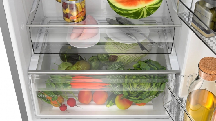 Холодильник Bosch з нижн. мороз., 203x70x67, xолод.відд.-310л, мороз.відд.-120л, 2дв., А++, NF, дисплей, нерж. Варіоінвертор працює, налаштовуючись залежно від змін температури всередині холодильника та зовні, а також від його внутрішнього навантаження. Якщо дверцята тривалий час зачинені, він працює з нижчою швидкістю і на нижчому рівні шуму і допомагає зберігати продукти за оптимальної температури. Він також забезпечує оптимальну ефективність роботи приладу під час коливань напруги. Таким чином можна насолодитися більш тихою та стабільною роботою холодильника за меншого енергоспоживання.