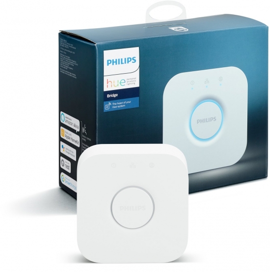 Блок керування є основною частиною системи розумного освітлення Philips Hue. Він взаємодіє з розумними лампами та додатком Philips Hue та забезпечує коректну роботу всієї системи. Крім того, Philis Hue Bridge підтримує функції автоматизації розумного будинку, як-от щоденний розклад завдань та таймери.
