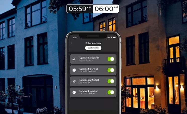 Підключайте розумні лампи до блоку керування Philips Hue Bridge й контролюйте освітлення в помешканні через додаток Philips Hue з будь-якої точки світу. Програмуйте різні режими, щоби лампи вмикалися в конкретний час та імітували присутність вдома господарів – тоді будете впевнені, що в помешканні нічого не станеться під час відсутності власників.