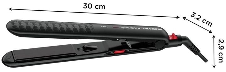 Опис Випрямляч Rowenta x Karl Lagerfeld Optiliss, >240Вт, темп.режимів-10, 130-230С, іонізація, кераміка, турмалін , чорний