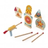 Ярмарок розваг вдома! Цей чудовий тир порадує як дітей, так і батьків, та дозволить добре провести час разом, зі своєю родиною! Цілься... Вогонь! У цій грі ви знайдете 5 кольорових мішеней з підставкою, за яку можна отримати від 10 до 50 очок. Їх потрібно збивати за допомогою пускової установки та 4 дротиків і розташовувати як завгодно та де завгодно! Задня частина дротиків є магнітною, щоб було легше направляти їх, коли вони розташовані в пусковому пристрої.