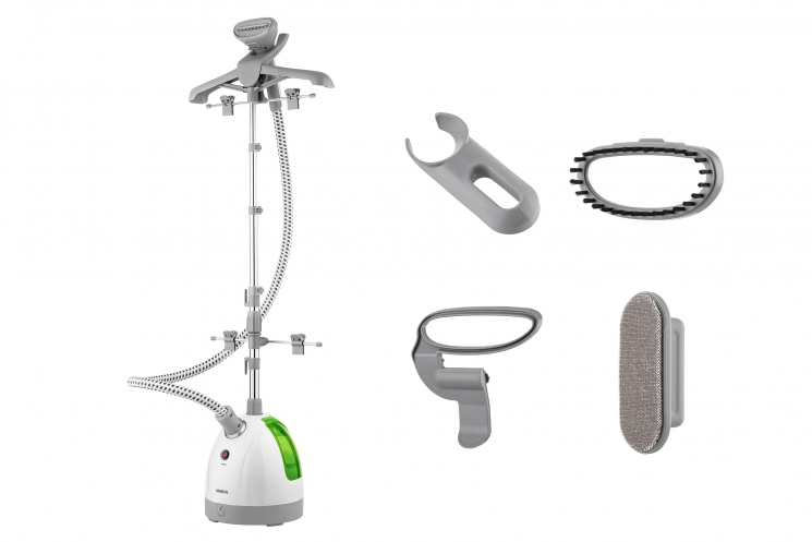 Вертикальний відпарювач ARDESTO потужністю 1 785 Вт допоможе випрасувати й освіжити речі. Для різних завдань у комплекті передбачено кілька насадок, зокрема: для вовни, окрема щітка для щільної шерсті, а також для догляду за текстилем. Зручність під час використання зумовлена можливістю регулювати висоту стійки (42-127 см) й оптимальною довжиною шланга (1,6 м).