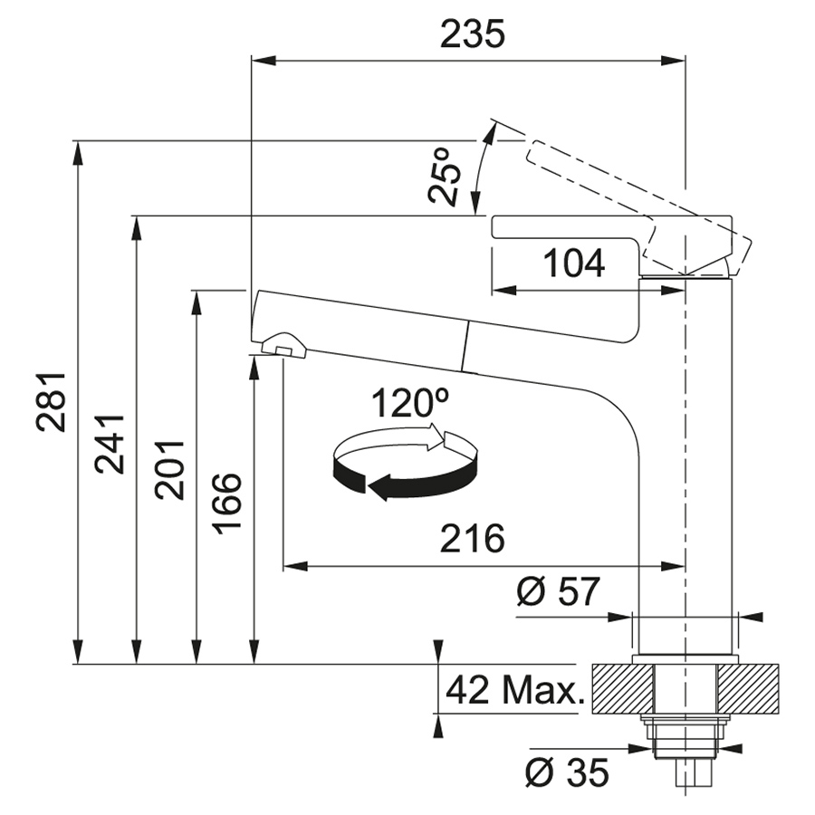 | Вид змішувача | одноважельний |