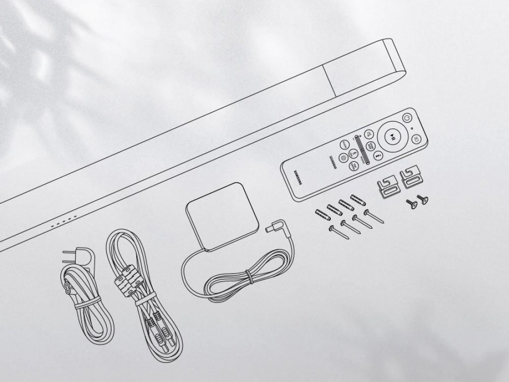Усередині коробки є все необхідне для легкої установки, у тому числі зручний комплект настінного кріплення Wall Mount Kit. Завдяки ньому саундбар виглядатиме стильно, де б його не встановили.