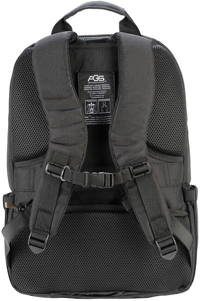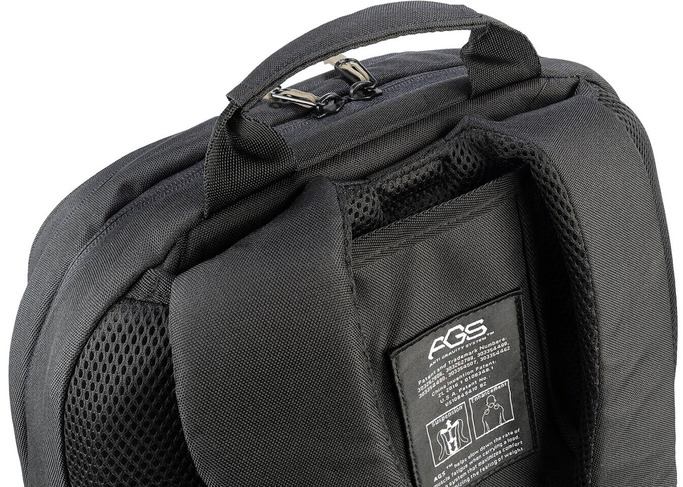 Ергономічна спинка формує комфорт під час перенесення рюкзака. Кишені з м’яким наповнювачем створюють захист для ноутбука та планшета. Система AGS у наплічних ременях зменшує тиск і робить рух природнішим. Бічні кишені надають простір для пляшки з водою або парасольки. Прихована задня кишеня додає безпечне місце для важливих предметів. Ремінець на спинці дає змогу розташувати рюкзак на валізі.