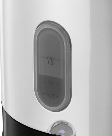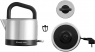 Чайник виготовлений з матової нержавіючої сталі з лакованими та полірованими деталями, функцією швидкого закипання на 1, 2 або 3 чашки. Ергономічна ручка унікальної форми з полірованим акцентом, основа з поворотом на 360° та скручуванням кабелю.
