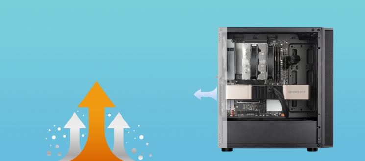 У комплекті чотири встановлених 120мм ARGB тихих вентилятори: три штуки на передній панелі - на вдув і один на задній панелі, який працює на видув. Забір повітря благополучно здійснюється через металеву сітку на передній панелі. Потоку достатньо для охолодження компонентів системи різного рівня.