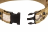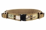 Тактичний ремінь, виготовлений у кольорі камуфляж (Camo), має продуману конструкцію, завдяки чому надійно фіксується, запобігаючи довільному прокручуванню. Ремінь є багатофункціональним: оснащений двома кріпленнями/чохлами на застібці Velcro, до яких можна покласти невеликий ніж чи мультитул. Розмір чохлів становить 14 × 6 × 5 см. Також передбачено можливість прикріпити додаткове навісне спорядження чи елементи розвантажувальних систем. Крім іншого, у разі потреби виріб можна використовувати як рятувальний ремінь чи джгут для перев’язки, адже він має достатню для цього довжину (123 см). Невелика вага (0,24 кг) жодним чином не позначається на експлуатаційних властивостях моделі.