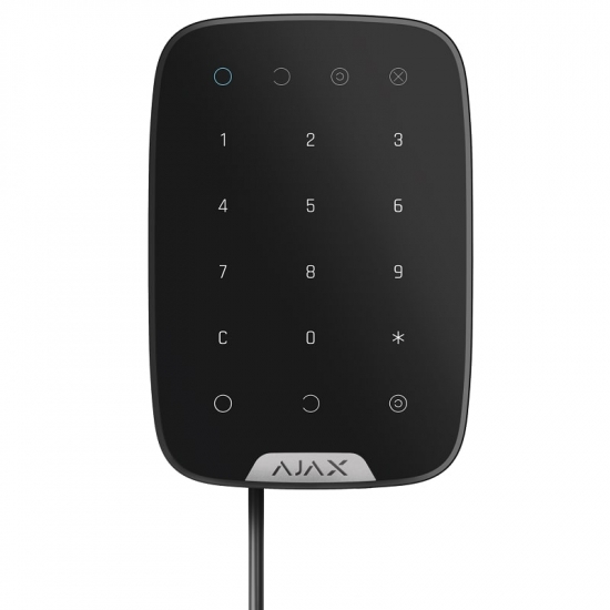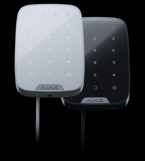 Дротова сенсорна клавіатура KeyPad Fibra — пристрій керування системою безпеки Ajax. Клавіатура обмінюється інформацією з контрольною панеллю захищеного протоколу Fibra, а дальність дротового зв’язку становить до 2 кілометрів при підключенні через кручену пару U/UTP cat.5.