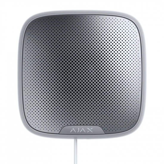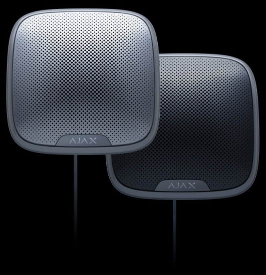StreetSiren Fibra - дротова охоронна сирена Ajax, яку можна встановлювати як на вулиці, так і в приміщенні. Сирена оснащена світлодіодною рамкою і п'єзоелектричним датчиком, який здатний видавати звук гучністю до 113 дБ.