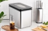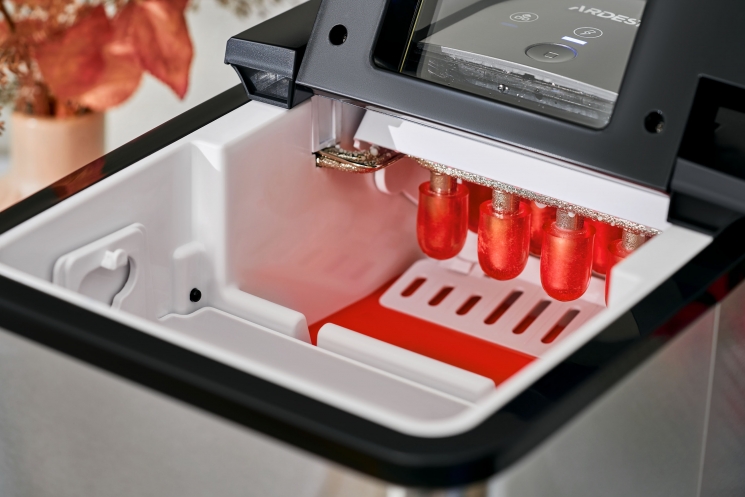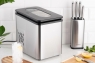 Незважаючи на невеликі розміри, продуктивність льодогенератора ARDESTO IM-A1200SS на найвищому рівні. За годину він здатен заморозити 500 г льоду, а за добу – 12 кг. За один цикл, який триває близько 9 хвилин, виходить дев’ять крижинок округлої форми. Кошик розраховано на 600 г, а резервуар для води вміщує 1,8 л. Під час роботи пристрою використовується активна система охолодження. Доступна функція самоочищення.
