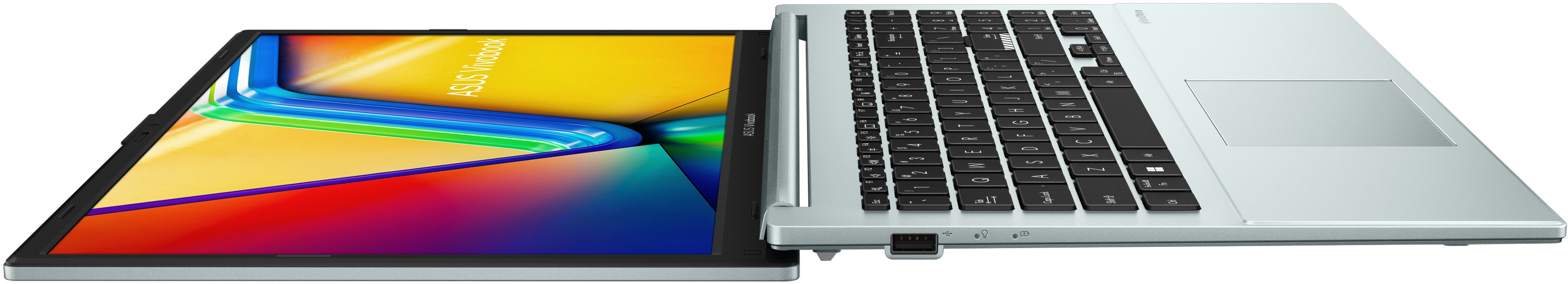 Vivobook Go 15 виконаний у трьох стильних варіантах кольору: класичних чорному (Mixed Black) і сріблястому (Cool Silver), а також новому затишному сіро-зеленому (Grey Green). Ноутбук Vivobook Go 15 – тонкий, щоб поміститися в будь-яку сумку, і легкий, щоб його можна було переносити однією рукою.
