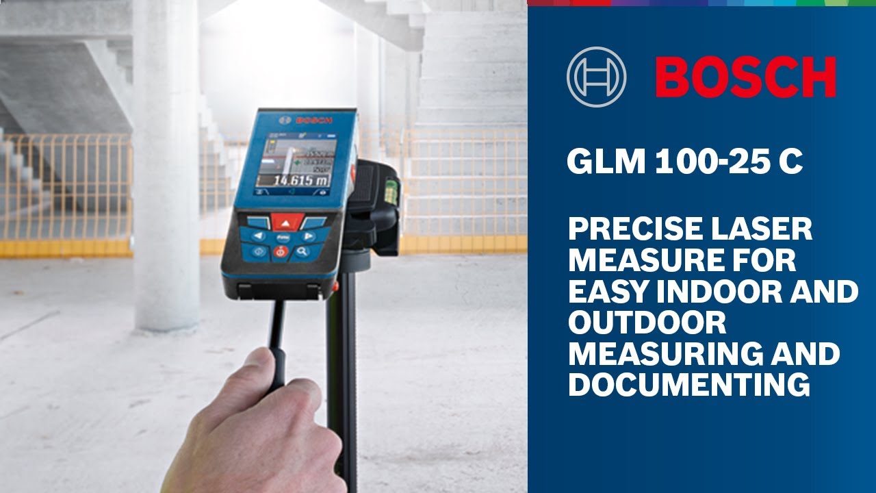 Опис Далекомір лазерний Bosch Professional GLM 100-25 C, 0.08–100м, ±1.5мм, 360°, Bluetooth, чохол, 0.23кг