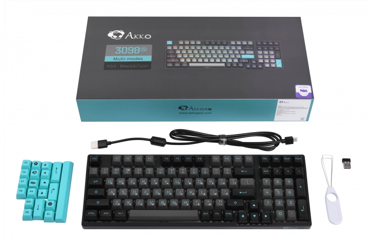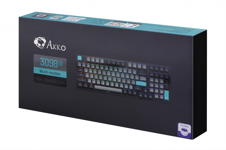 Опис Клавіатура механічна Akko 3098N Black&Cyan 98Key, TTC Honey, BT/WL/USB-A, Hot-swappable, EN/UKR, RGB, чорний