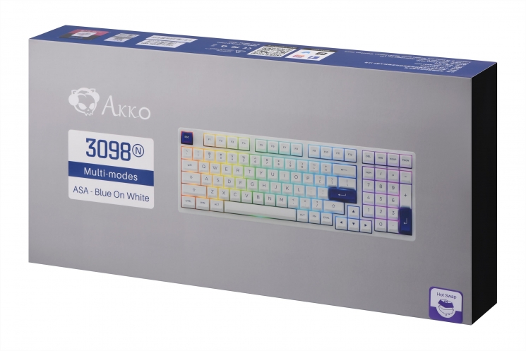 Опис Клавіатура механічна Akko 3098N Blue&white 98Key, TTC Honey, BT/WL/USB-A, Hot-swappable, EN/UKR, RGB, білий