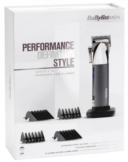 Де купити Машинка для стриження Babyliss Super-X Metal Series, мережа+акум., вібраційний мотор, насадок-10, кейс, чохол, гребінець у компл., сталь, сірий: