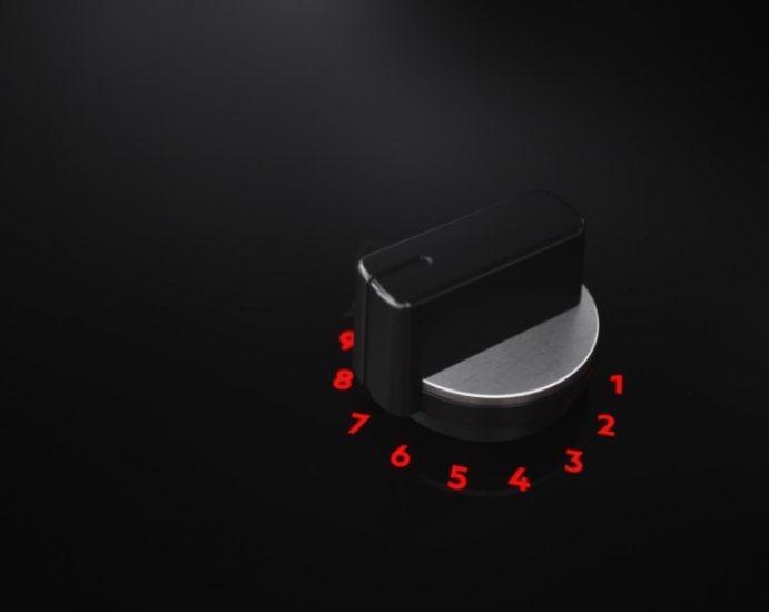 Контролюйте рівень потужності за допомогою яскравих світлодіодний індикаторів FlameLight. Їхня яскравість дозволяє легко бачити та вибирати рівень інтенсивності полум'я від 1 до 9. FlameLight також дозволяє дізнатися, коли конфорка вимкнена або увімкнена.